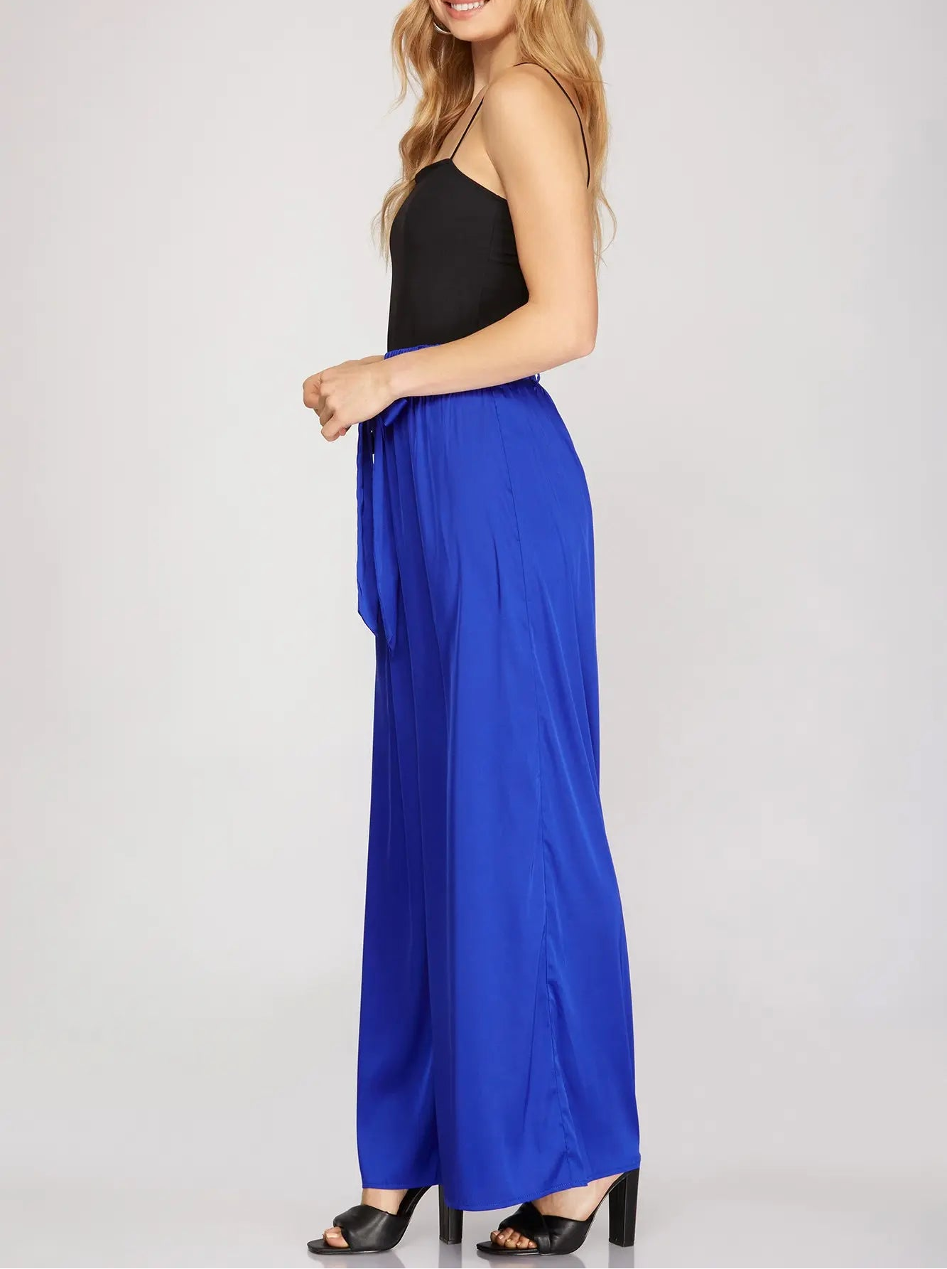 Miss Electric - The Electric Blue Satin Pants with Waist Tie